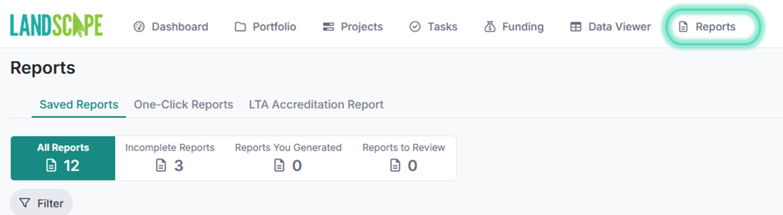 All reports—including Saved Reports, One-Click Reports, and the LTA Accreditation Report—are now grouped in a single place for quicker access and better organization.